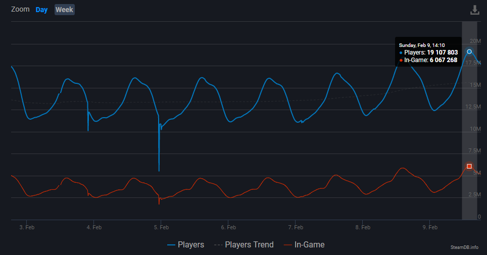 Сегодня в Steam впервые одновременно находились более 19 млн пользователей онлайн. Сервис обновил рекорд недельной давности – 18,8 млн игроков в сети.