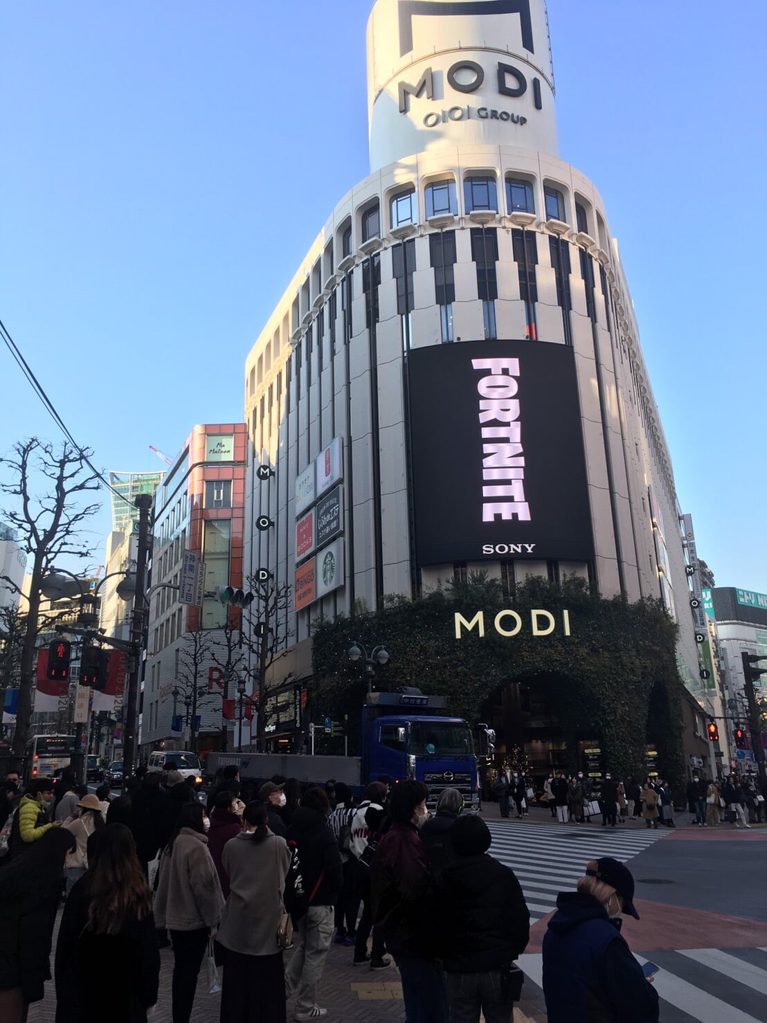 В Токио, в районе Сибуя, появилась реклама Fortnite – в 15-секундном ролике показан логотип игры, в видео нет звука.