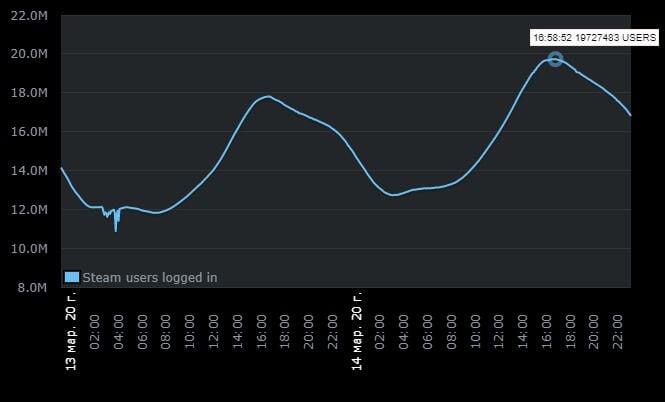 Вчера в клиенте находились более 19,7 миллионов человек. Прошлый рекорд Steam – 18 миллионов игроков.