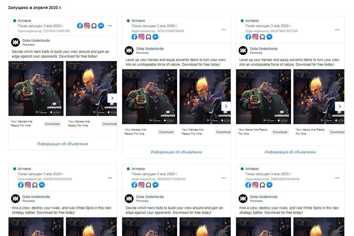 Реклама Dota Underlords появилась в Facebook и Instagram