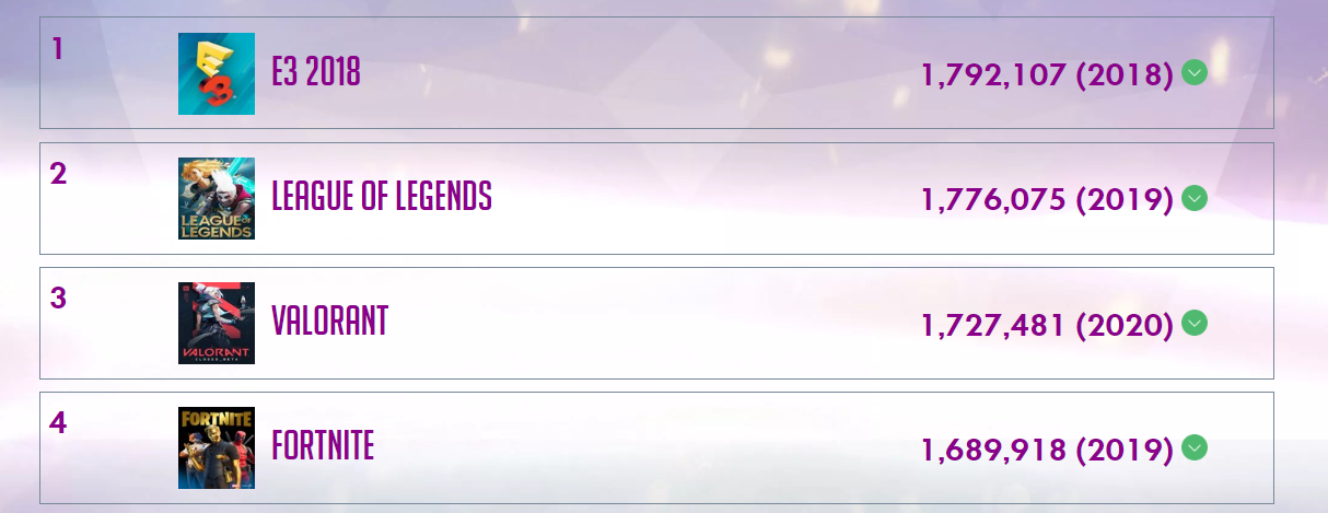 Шутер Valorant от Riot Games занял третью строчку по пиковому количеству зрителей на Twitch за все время существования платформы.