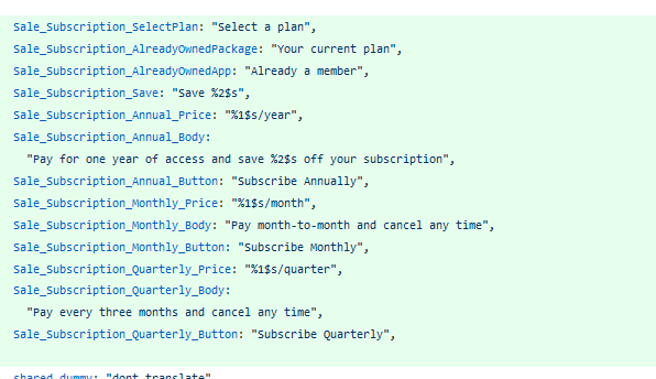 Строчки кода указывают на возможность выбора пользователем срока подписки, а также отображение скидок за ее длительность.