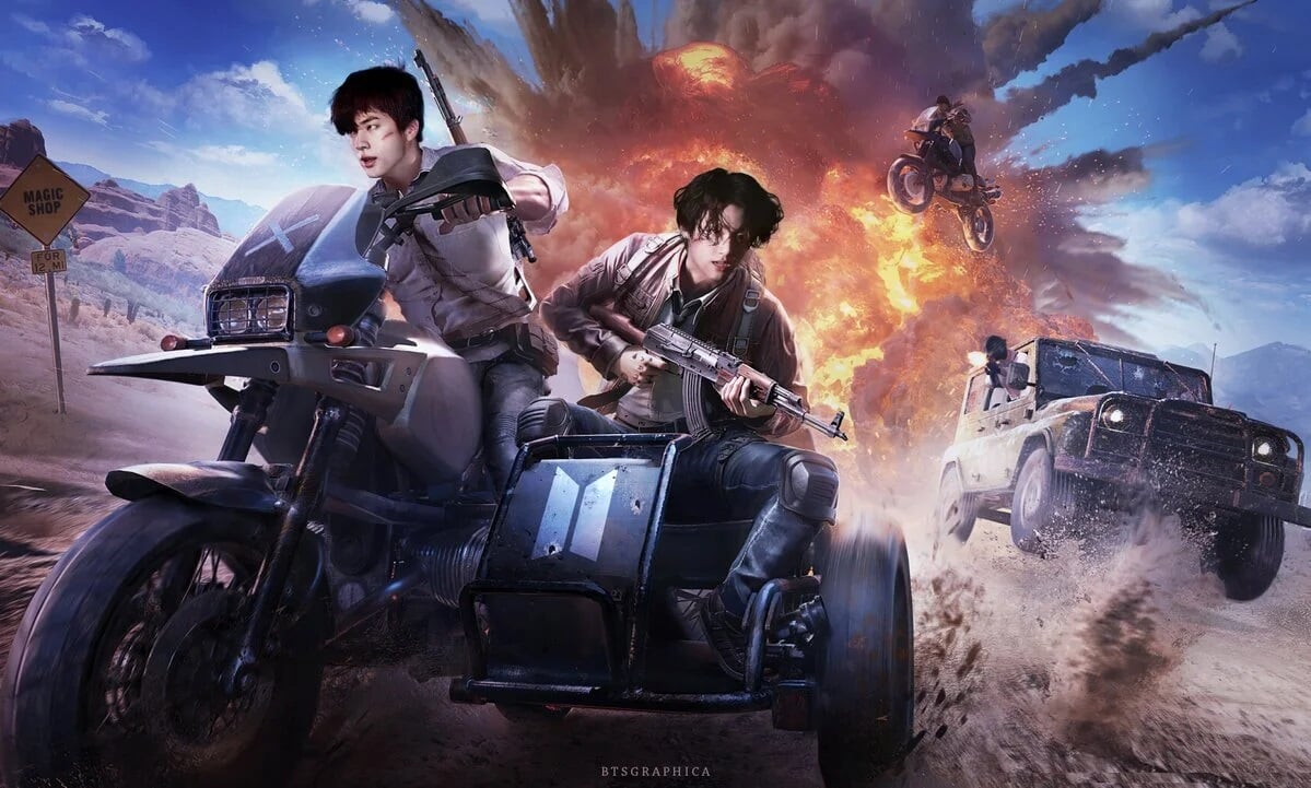 Вокалист BTS Ким Тхэхен, более известный как Ви, – любит играть в PUBG. Из-за этого фанаты группы начали фотошопить членов BTS на постеры и скриншоты королевской битвы.
