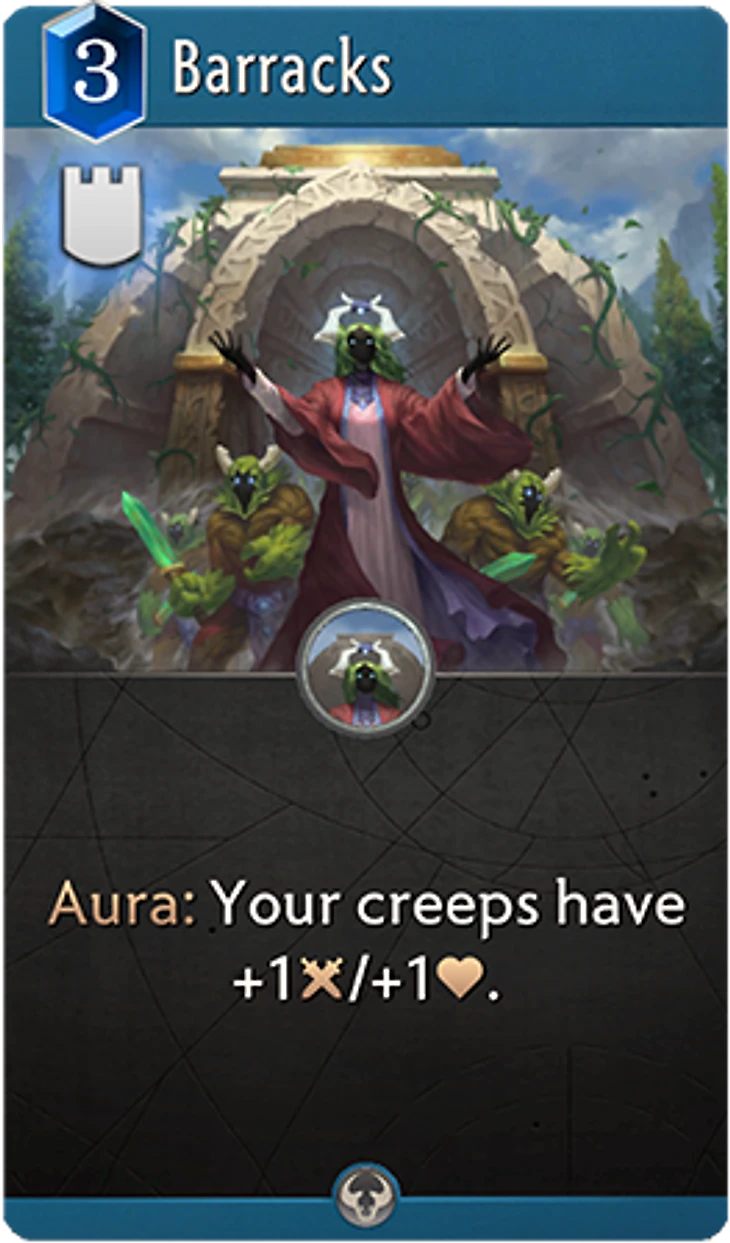 • Выходя на линию, Преллекс превращает одного из крипов-мечников в мегакрипа, моментально усиливая свою сторону.• Размещение крипов справа позволяет немного разнообразить тактику в следующих раундах. В любом раунде, кроме первого, вы можете легко выставить сильного защитника в четвертую или пятую ячейку.• Благодаря «Казармам» слабые синие крипы остаются здоровыми, что позволяет чаще применять их мощные способности.