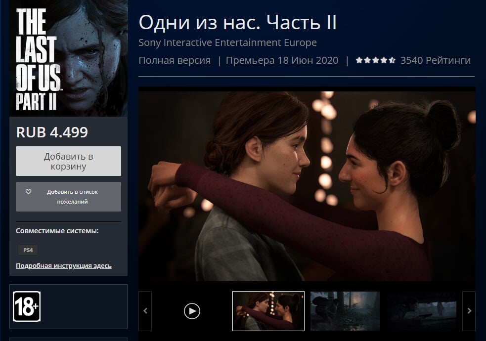 Пользователи PlayStation Store оценили вторую часть The Last Of Us 2 на 4,5 балла из 5 возможных.