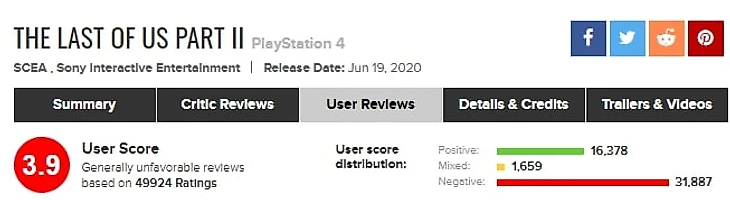 The Last of Us 2 побила рекорд по количеству негативных оценок на Metacritic