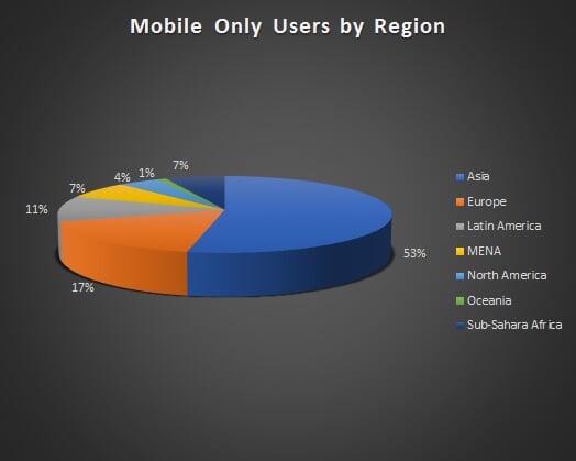 На Азию приходятся 53% любителей мобильных игр. В Европе этот показатель составляет 17%, в Латинской Америке – 11%.