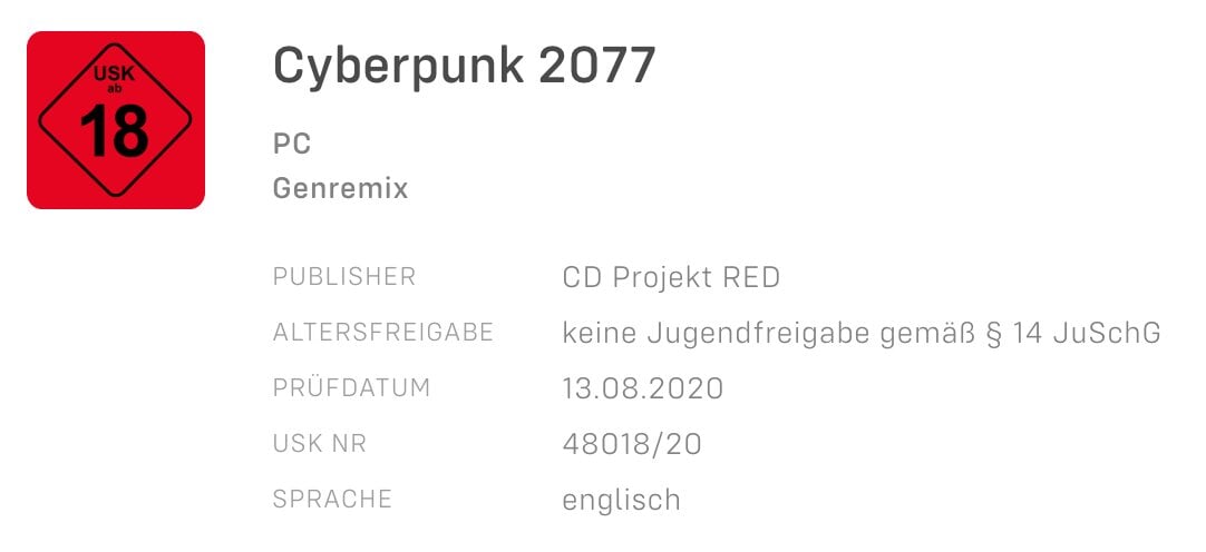 «К другим новостям. Cyberpunk 2077 получила возрастной рейтинг в Германии», – написал Грабовски в твиттере и опубликовал скриншот.