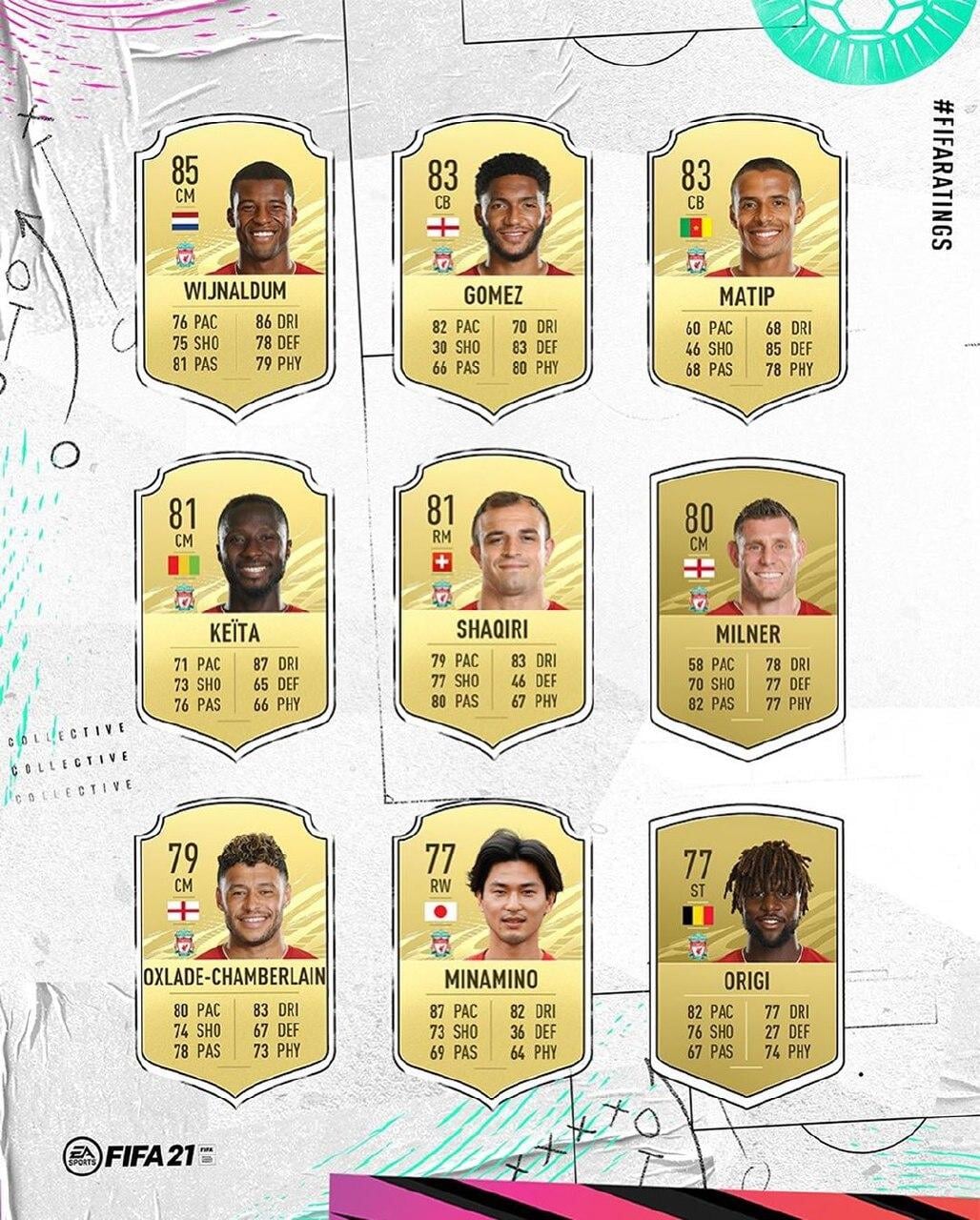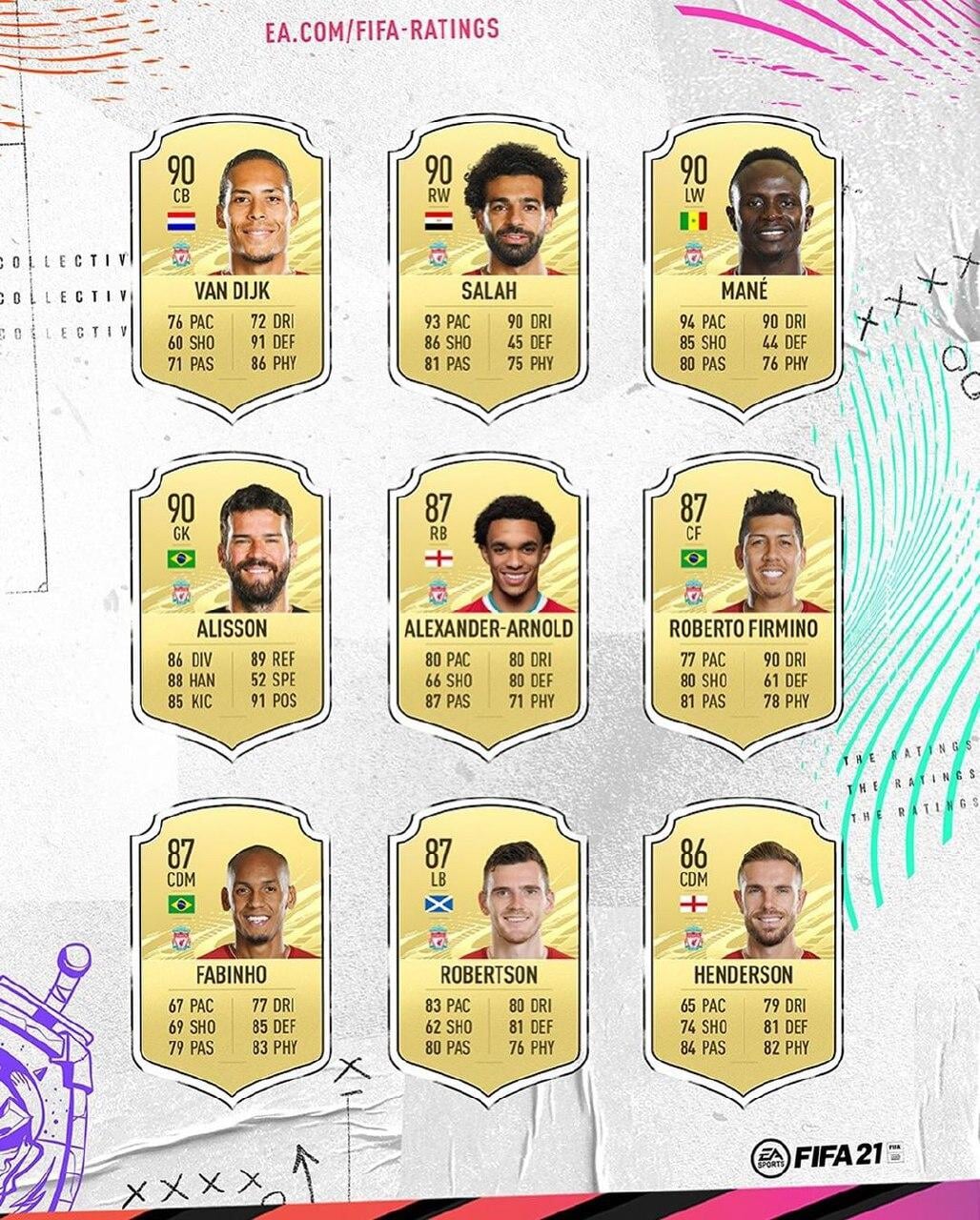 1. Вирджил ван Дейк – 902. Мохамед Салах – 903. Садьо Мане – 904. Алиссон – 905. Трент Александер-Арнолд – 876. Роберто Фирмино – 877. Фабиньо – 878. Эндрю Робертсон – 879. Джордан Хендерсон – 8610. Джорджиньо Вейналдум – 8511. Джо Гомес – 8312. Жоэль Матип – 8313. Наби Кейта – 8114. Джердан Шакири – 8115. Джеймс Милнер – 8016. Алекс Окслейд-Чемберлен – 7917. Такуми Минамино – 7718. Дивок Ориги – 77