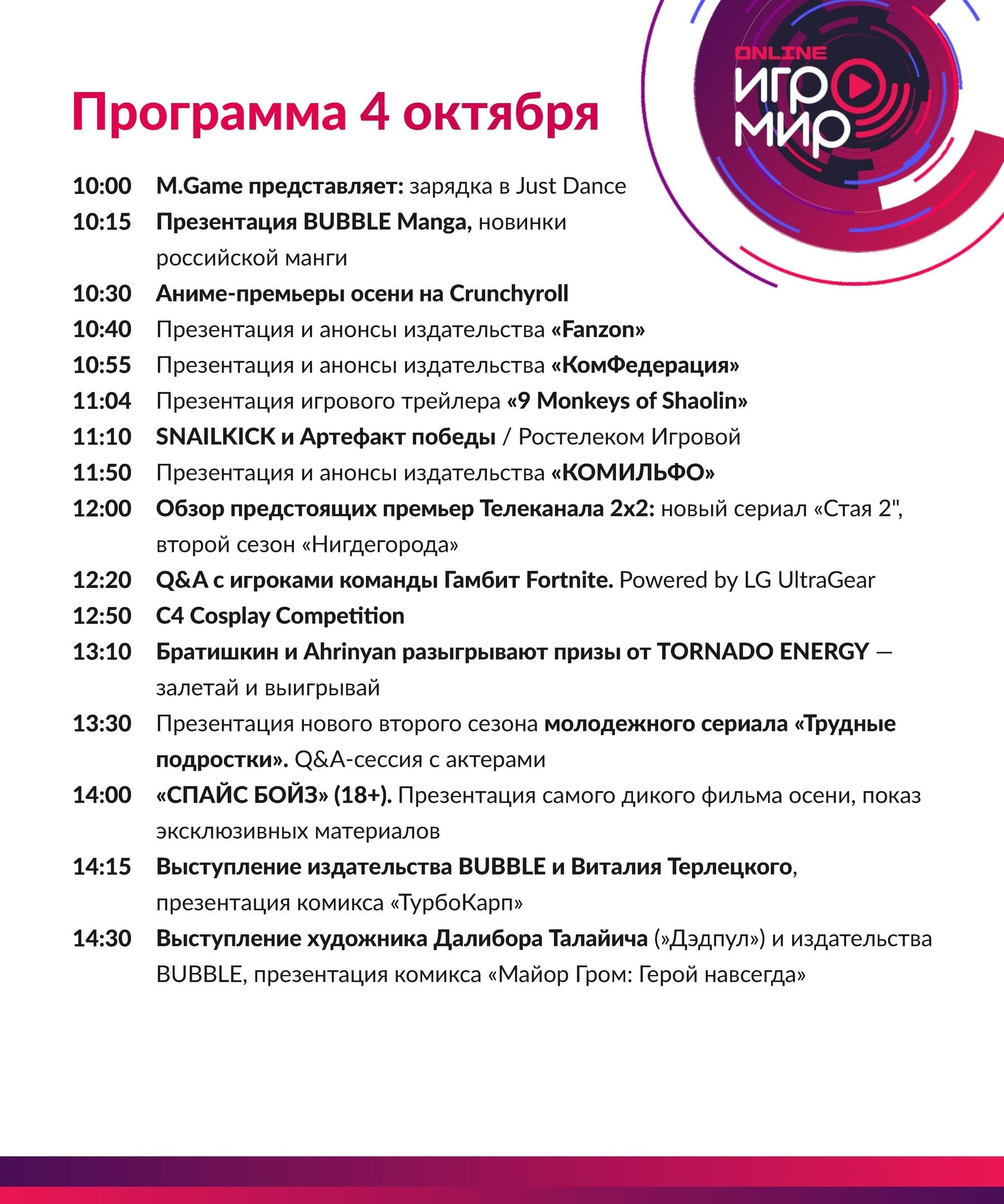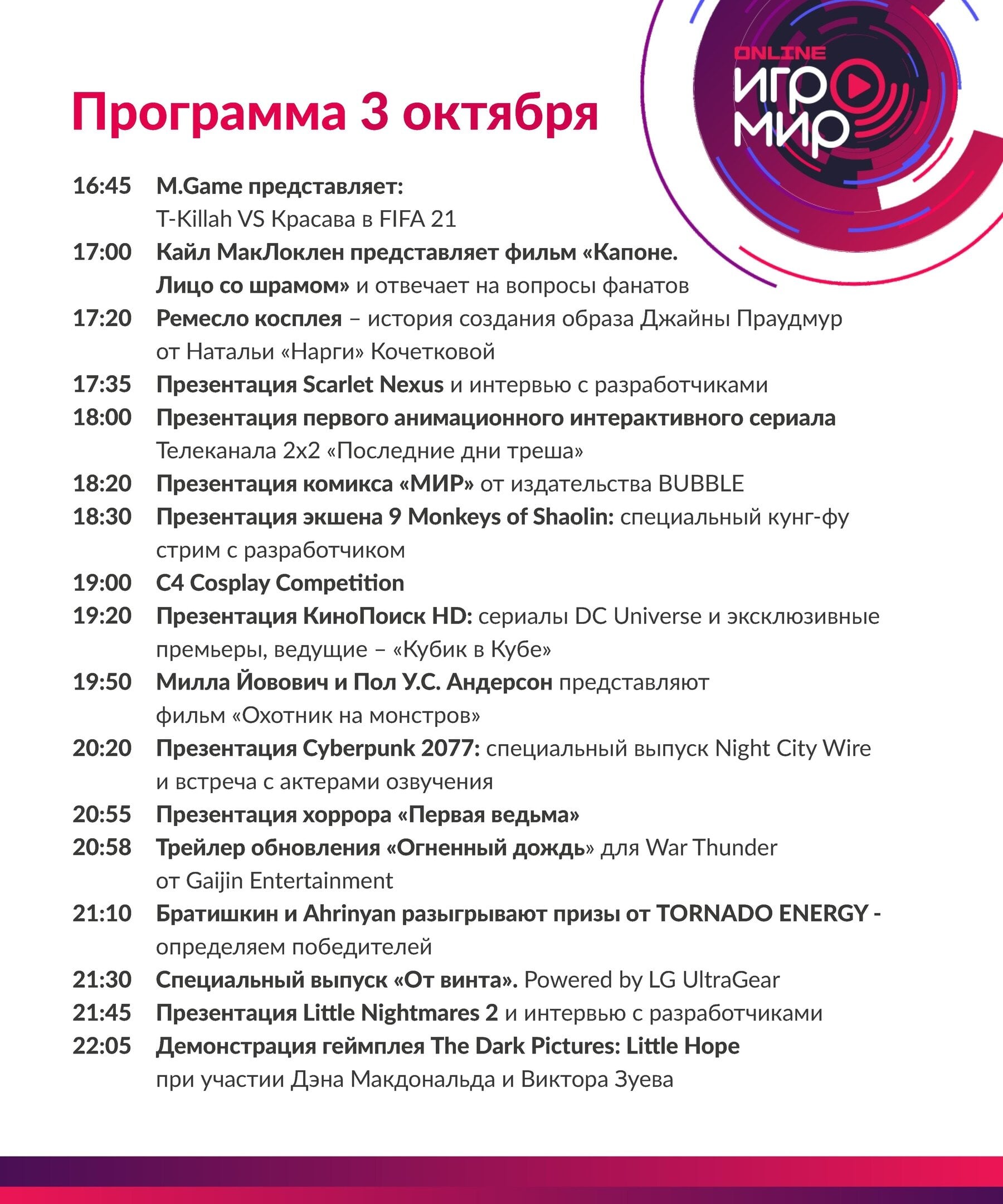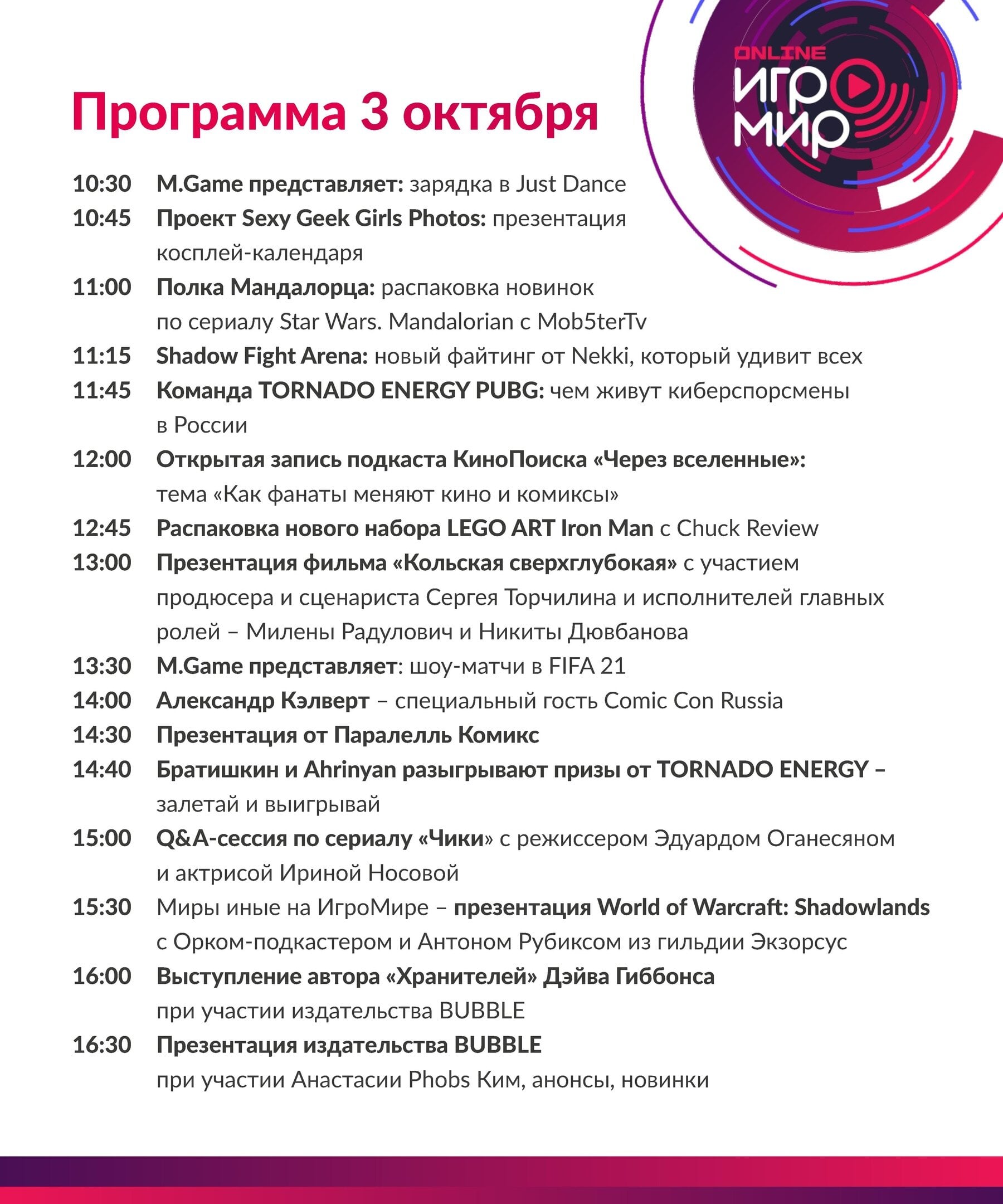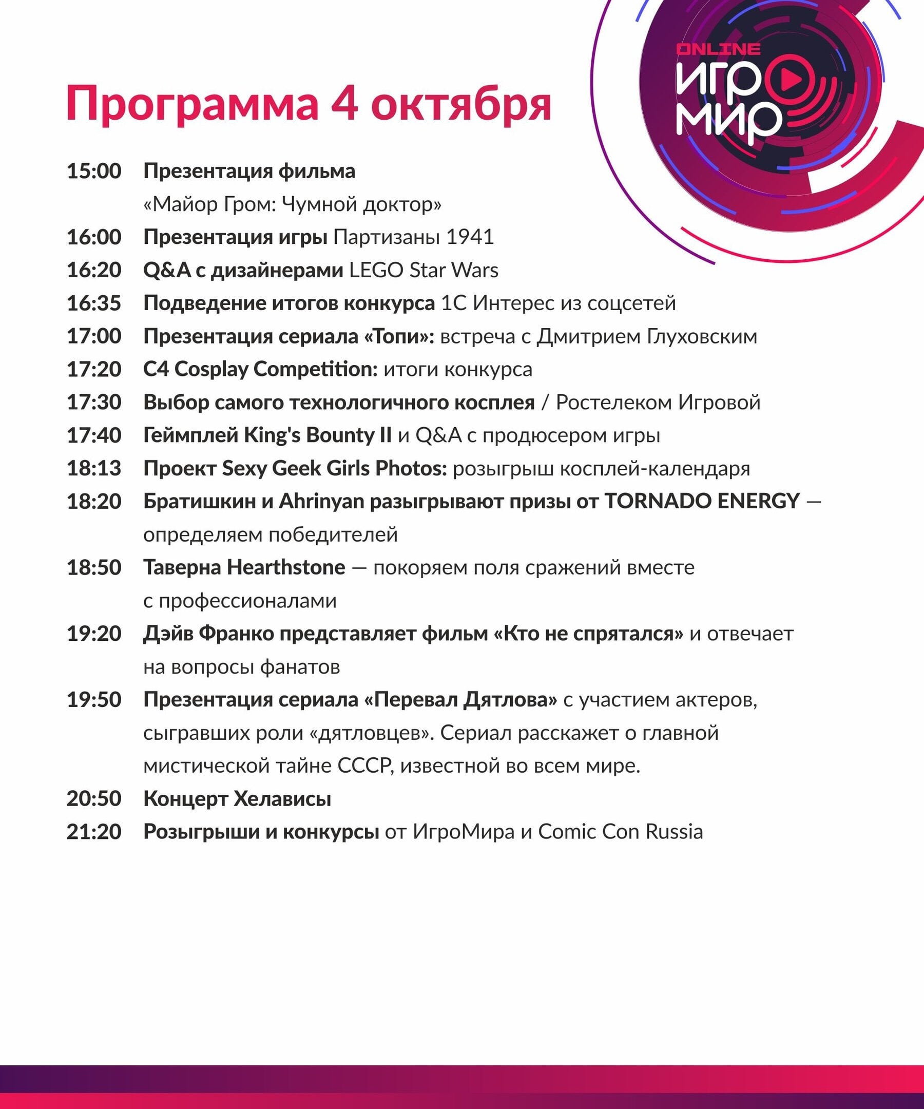 Организаторы «ИгроМира Online» опубликовали полное расписание мероприятия.