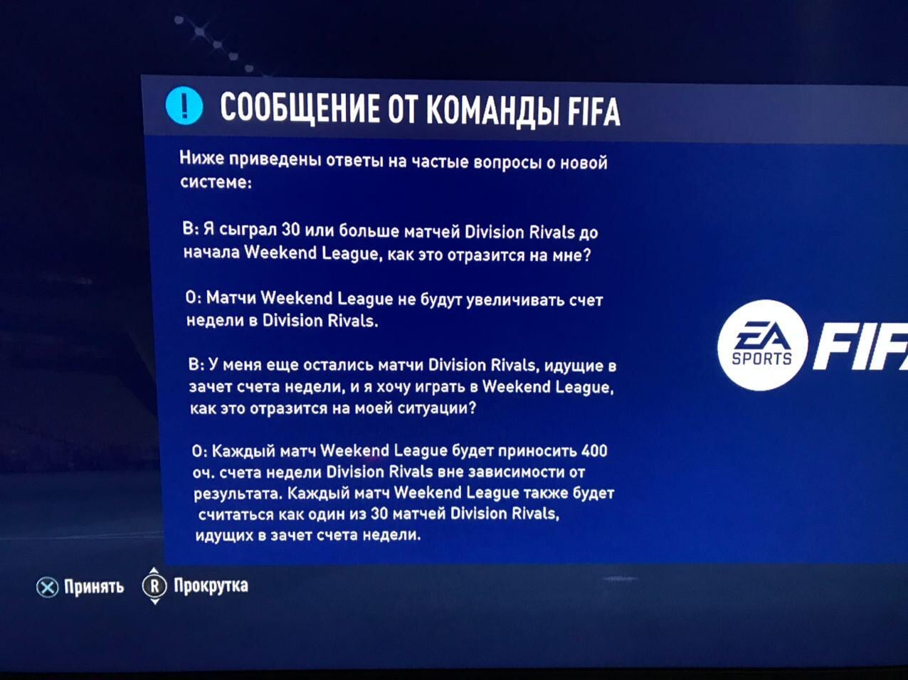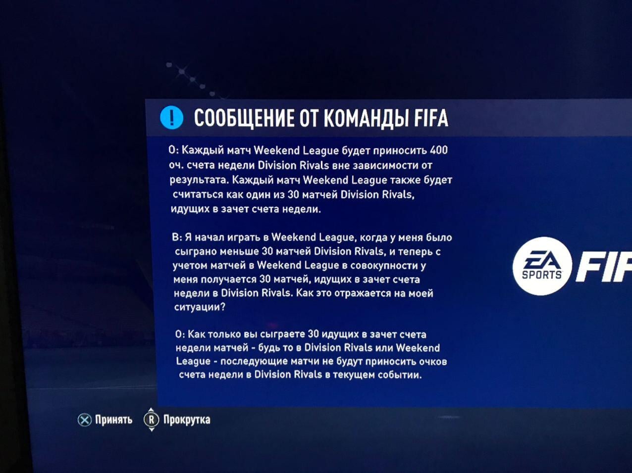 Завершенные матчи Weekend League приносят 400 очков, если игрок еще не провел 30 матчей Division Rivals, идущих в зачет счета недели в текущем турнире.