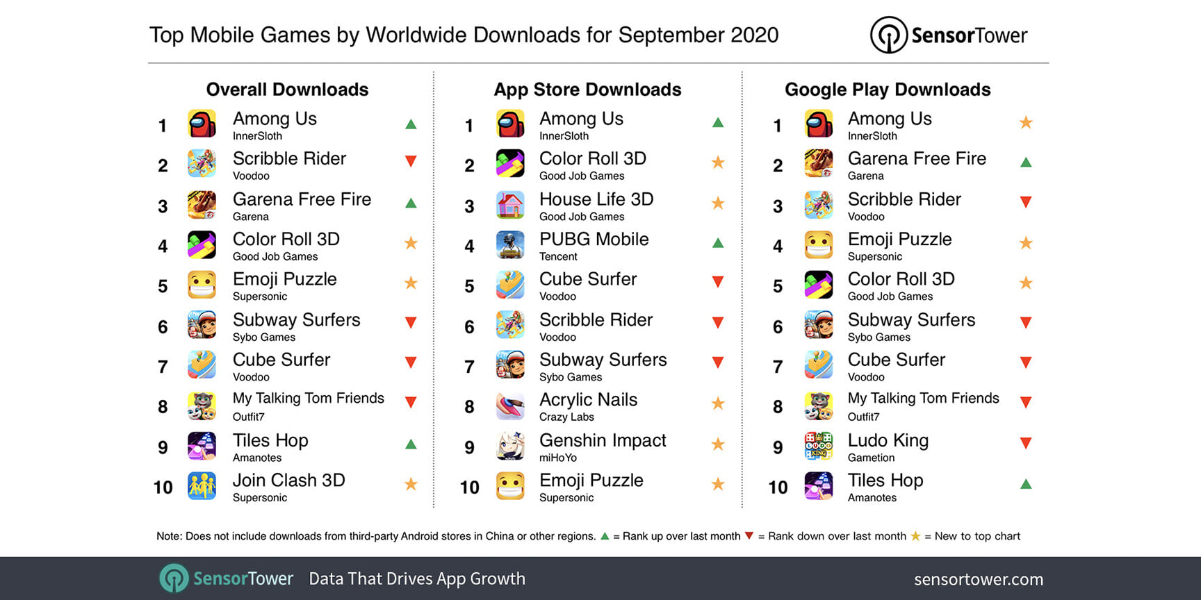 По данным компании, Among Us стала самой популярной игрой в мире – она возглавила чарты загрузок и в App Store, и в Google Play.