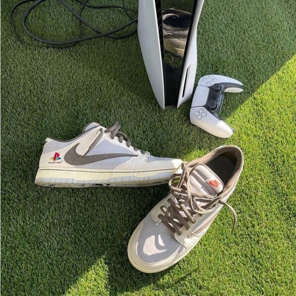 Музыкант представил фанатам кроссовки Nike Dunk Low x Cactus Jack x PlayStation, выполненные в нейтральных цветах с логотипом PlayStation 5 на подошве и пятке. Также частью коллекции стали различные худи, бомберы, футболки, крюнеки, пуховики, штаны, сумка и другие аксессуары.