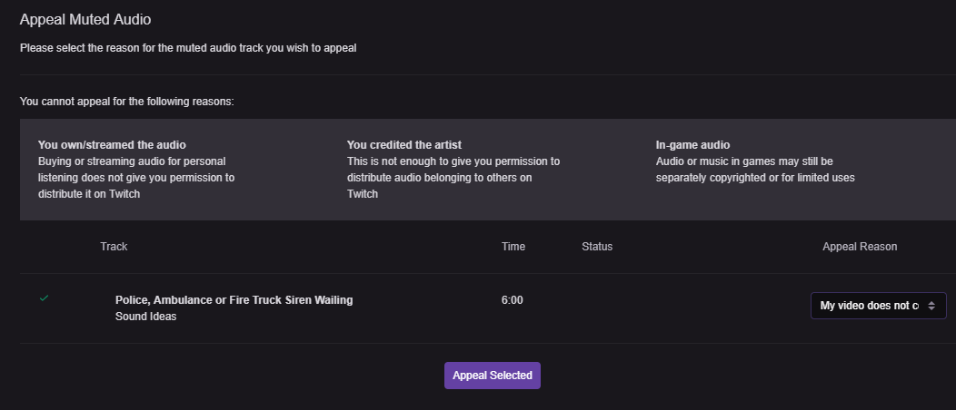 На скриншоте видно, что звук в одном из его водов отключили из-за звука полицейской сирены. Ранее Twitch ужесточил правила работы с жалобами DMCA – из-за этого стримерам пришлось удалять записи и воды.