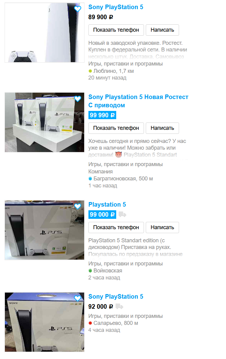 PlayStation 5 на Avito перепродают за 80-100 тысяч рублей