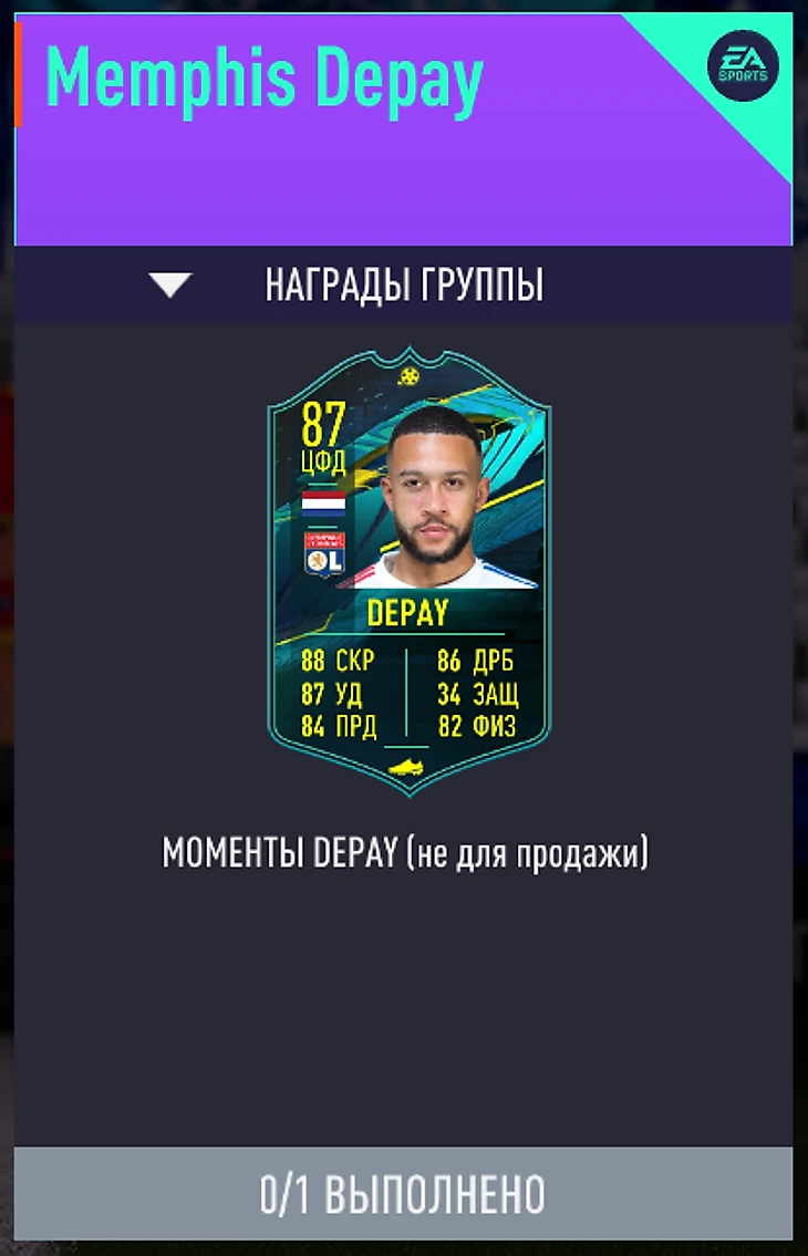 В FIFA 21 добавили ИПК на карточку моментов Депая (рейтинг – 87). У нас есть решение