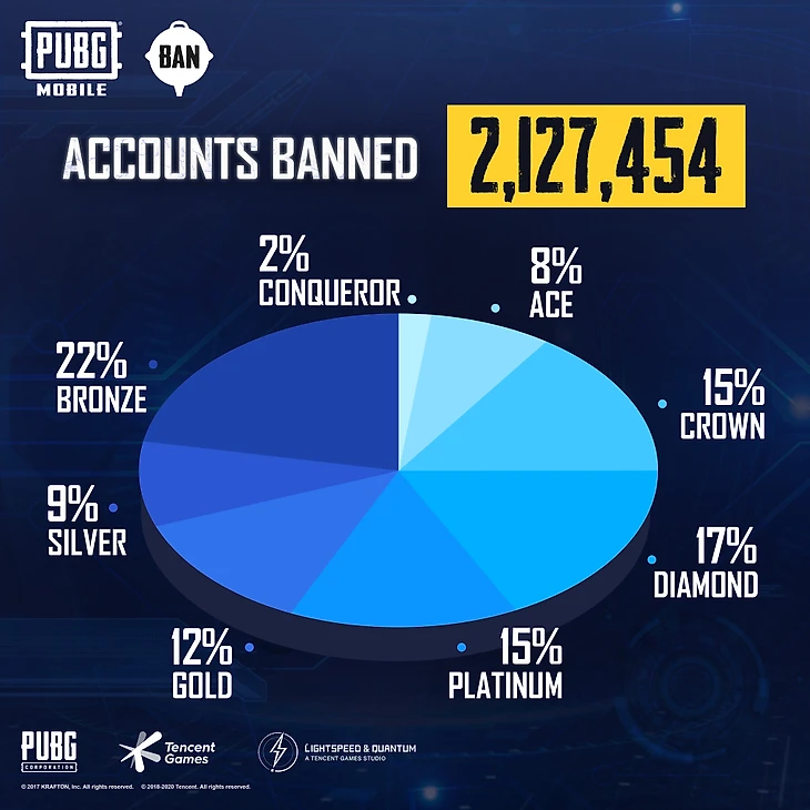Разработчики PUBG Mobile опубликовали статистику забаненных аккаунтов в период с 11 по 17 декабря.