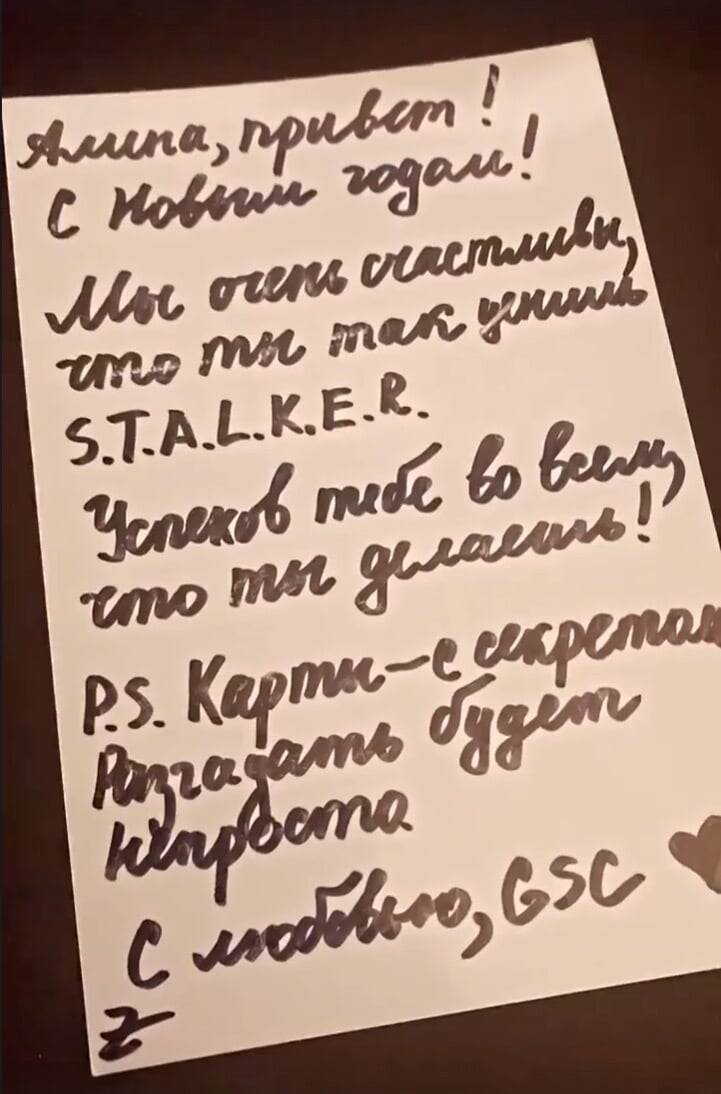 В посылку вошли колода карт «с секретом», фирменная толстовка, сумка и открытка с личными пожеланиями от разработчиков. Ранее GSC Game World уже отправляла подобные наборы победителям конкурса и модераторам Discord-канала, но их состав отличался – например, вместо полной колоды в посылки клали всего одну карту.