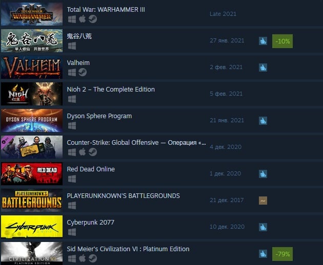 Стратегия обошла Nioh 2 и Dyson Sphere Program, которая лидировала в чарте продаж Steam на прошлой неделе.