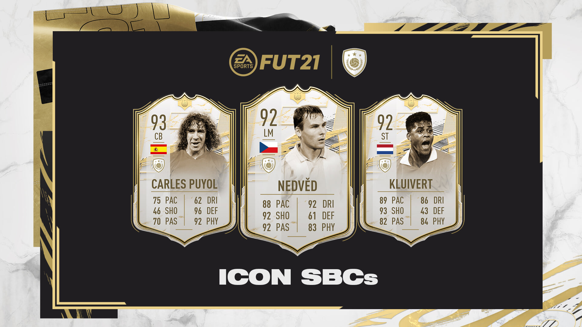 В FIFA 21 в испытания подбора команды добавили три карточки икон в моменте – их получили испанец Карлес Пуйоль (рейтинг 93), голландец Патрик Клюйверт (рейтинг 92) и чех Павел Недвед (рейтинг 92).
