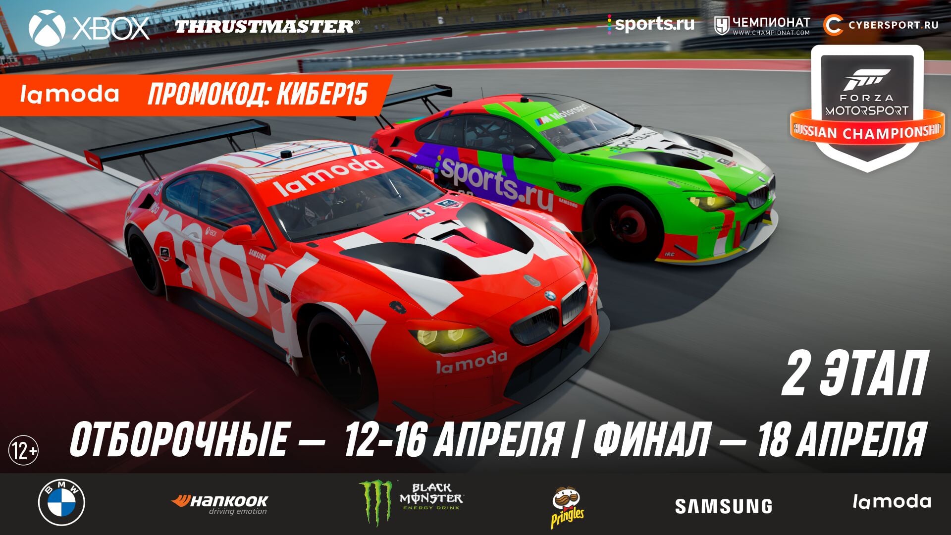 Отборочные заезды пройдут с 12 по 16 апреля в онлайне, финал этапа состоится 18 апреля в 18:00 МСК. Официальный автомобиль второго этапа – BMW M6 GTLM, заезды пройдут на «Трасса Америк».