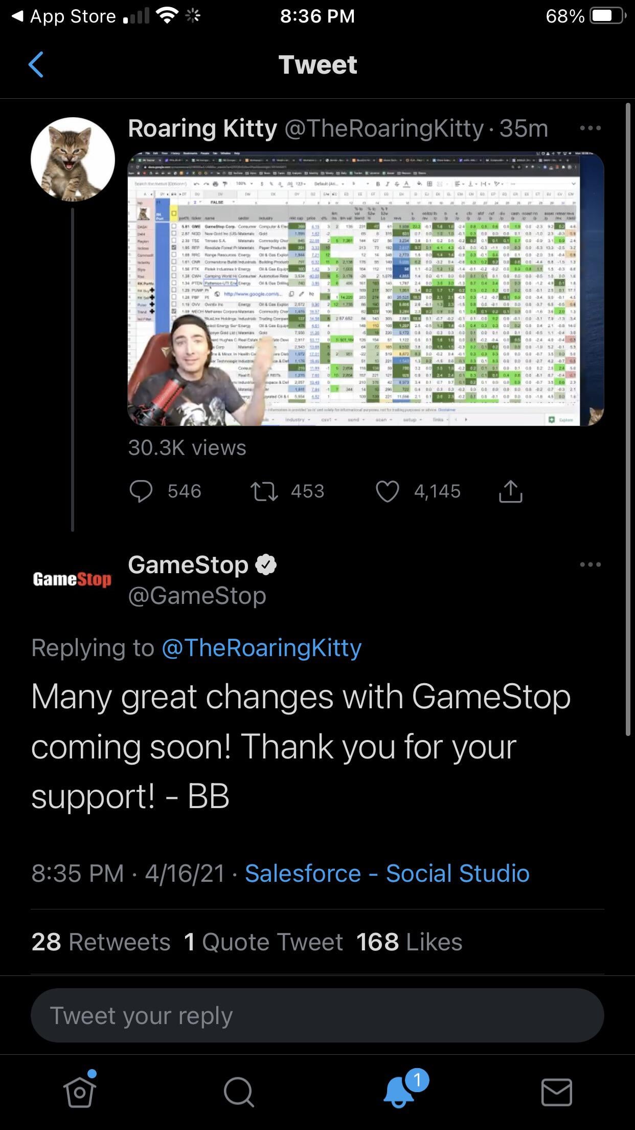 «В скором времени GameStop ждет множество отличных перемен! Спасибо за поддержку!» – заявила компания, однако позже твит был удален.