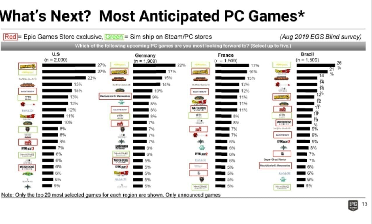 О том, что тайтл выйдет в EGS стало известно из документов, представленных в суде для разбирательства по делу Epic Games и Apple. На одном из слайдов компании были указаны результаты опроса о самых ожидаемых играх в США и европейских странах – среди ранее вышедших эксклюзивов (Borderlands 3 и MechWarrior 5: Mercenaries) была замечена и Dead Island 2.