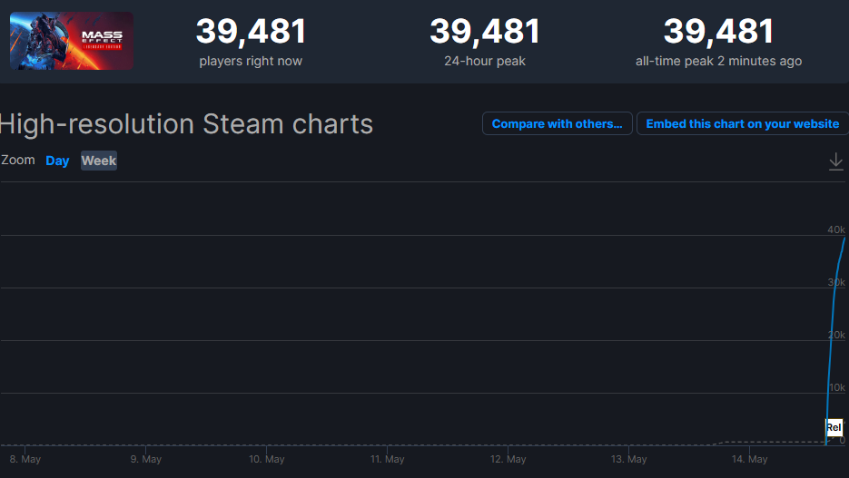 Пик Mass Effect Legendary Edition превысил 39 тысяч игроков в Steam