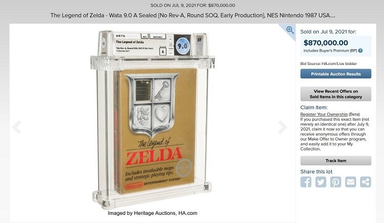 Картридж с оригинальной The Legend of Zelda был продан за 870 тысяч долларов. Это рекорд для видеоигр
