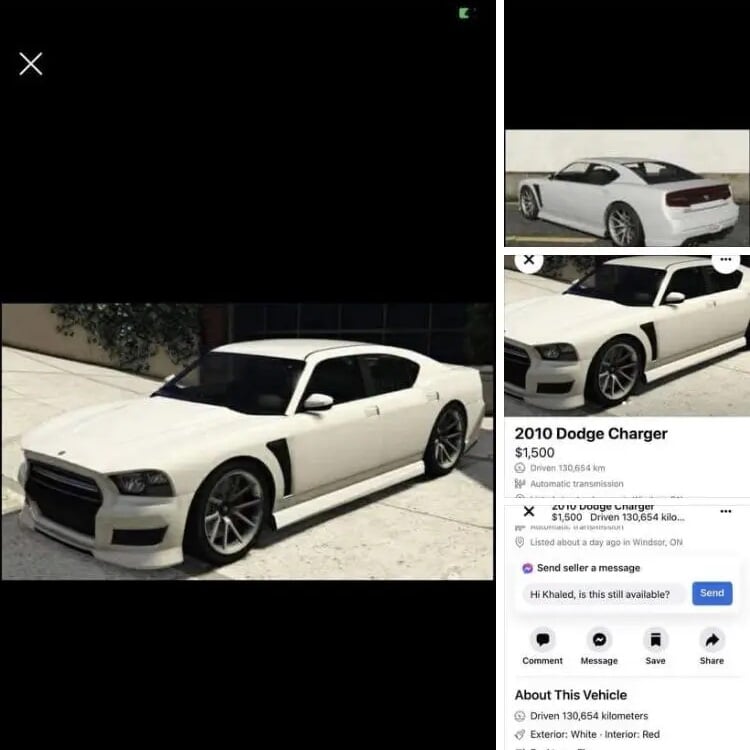 Владелец пытается продать Dodge Charger 2010 года с пробегом 130 тысяч километров за 1,5 тысячи долларов. В качестве фотографий автор объявления использовал скриншоты спорткара Bravado Buffalo S из GTA 5, который принадлежит Франклину и является игровым прототипом Dodge Charger.