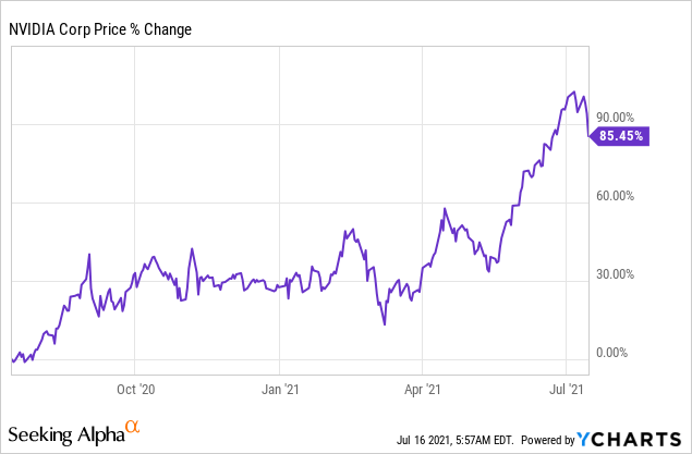 Акции Nvidia подорожали в цене на 53% с начала 2021 года.