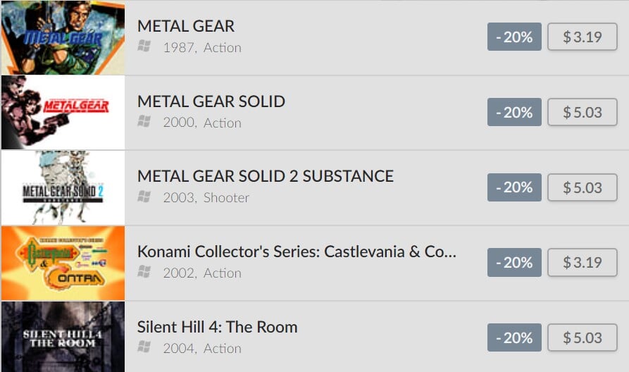 Набор классических игр Konami вышел в GOG в сентябре 2020 года.