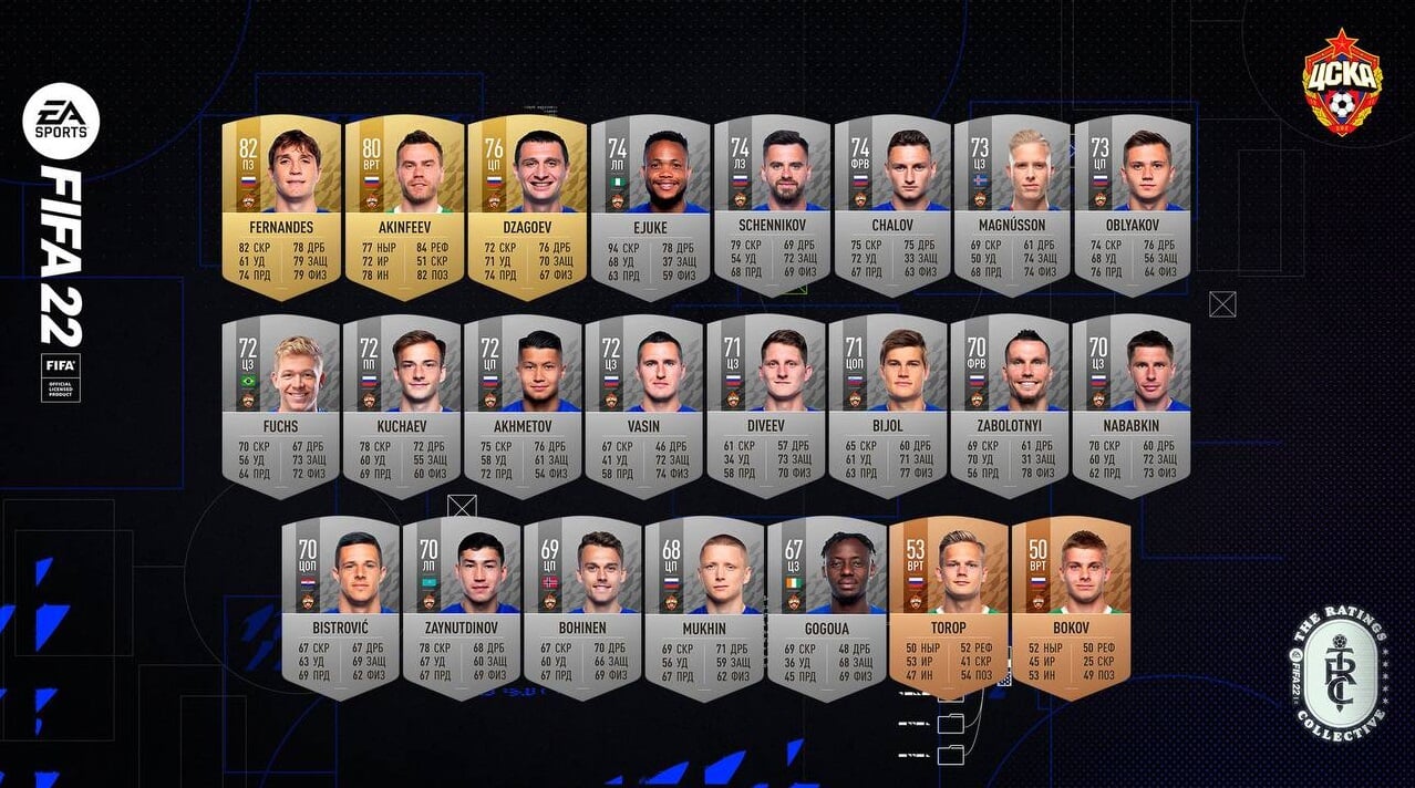 EA Sports опубликовала рейтинги игроков ЦСКА в FIFA 22.