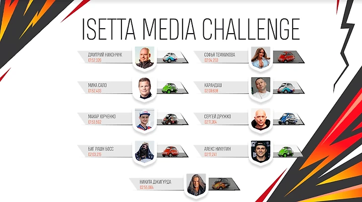 Влади также поучаствует в фан-заезде Isetta Media Challenge, где первое место удерживает инструктор академии BMW Дмитрий Никончук.