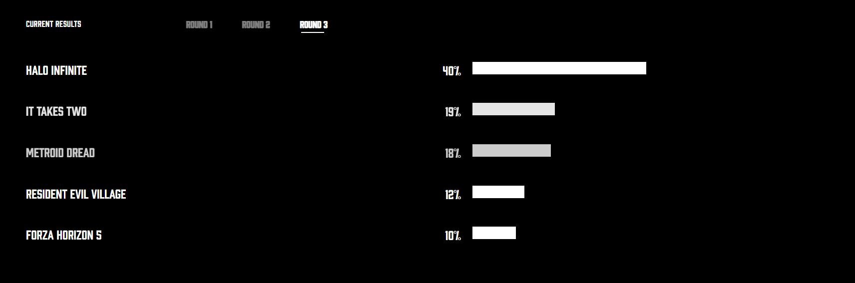 В финал вышли Resident Evil Village, Halo Infinite, It Takes Two, Metroid Dread и Forza Horizon 5.