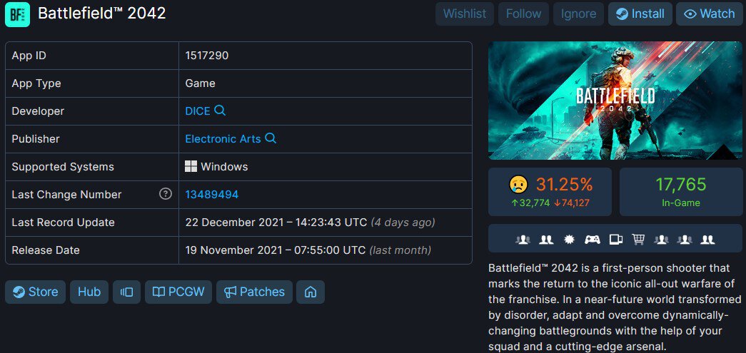 В свою очередь, в Battlefield 2042 играют чуть менее 18 тысяч пользователей. Стоит отметить, что 24 декабря онлайн Battlefield 5 превысил онлайн новой части шутера – 22 тысячи и 19 тысяч игроков соответственно.