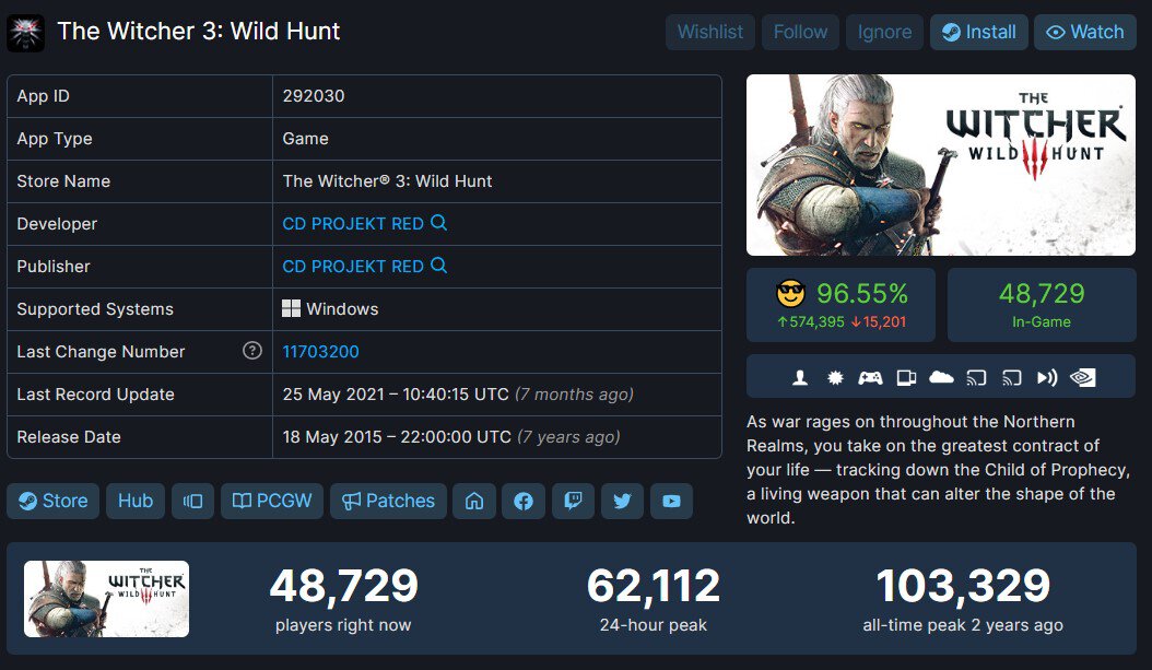 Пиковый онлайн «Ведьмака 3» в Steam превысил 60 тысяч игроков после релиза сериала Netflix