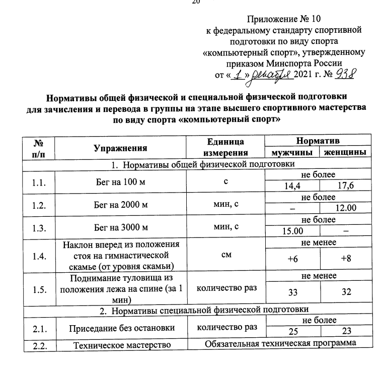 Министерство спорта РФ утвердило программу подготовки киберспортсменов с бегом на 3 км и приседаниями