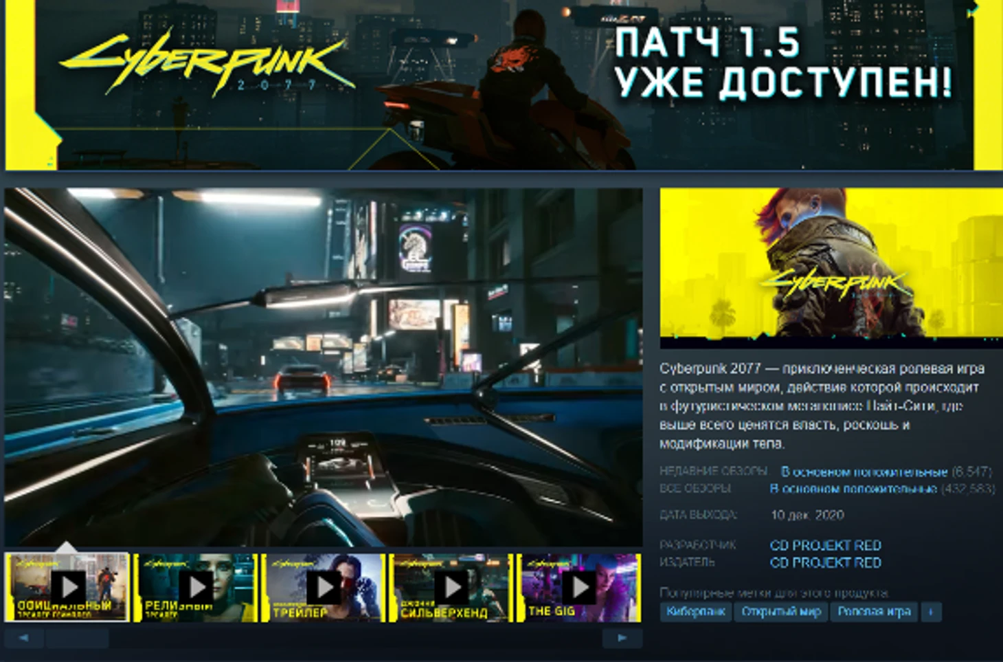 Cyberpunk 2077 снова позиционируется как ролевая игра, как и было изначально. После выхода игры в Steam, из описания следовало, что Cyberpunk 2077 – экшен с элементами RPG. С появлением патча 1.5 описание изменилось на формулировку «приключенческая ролевая игра с открытым миром».