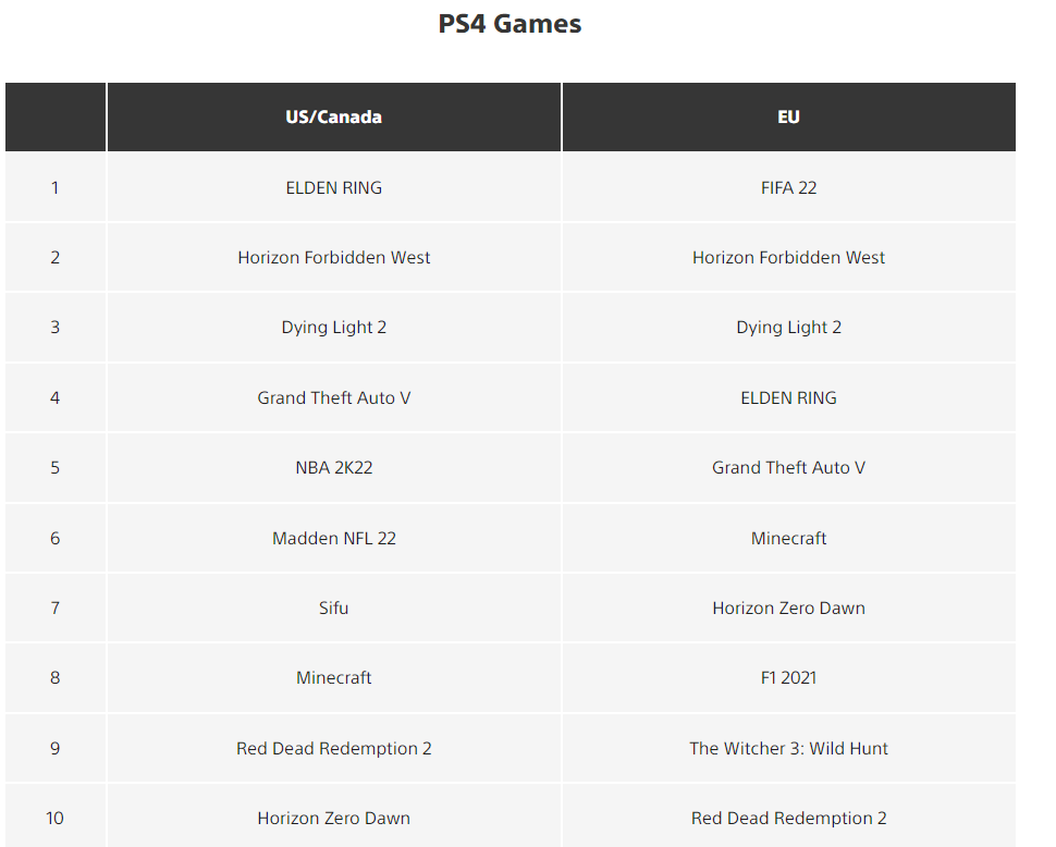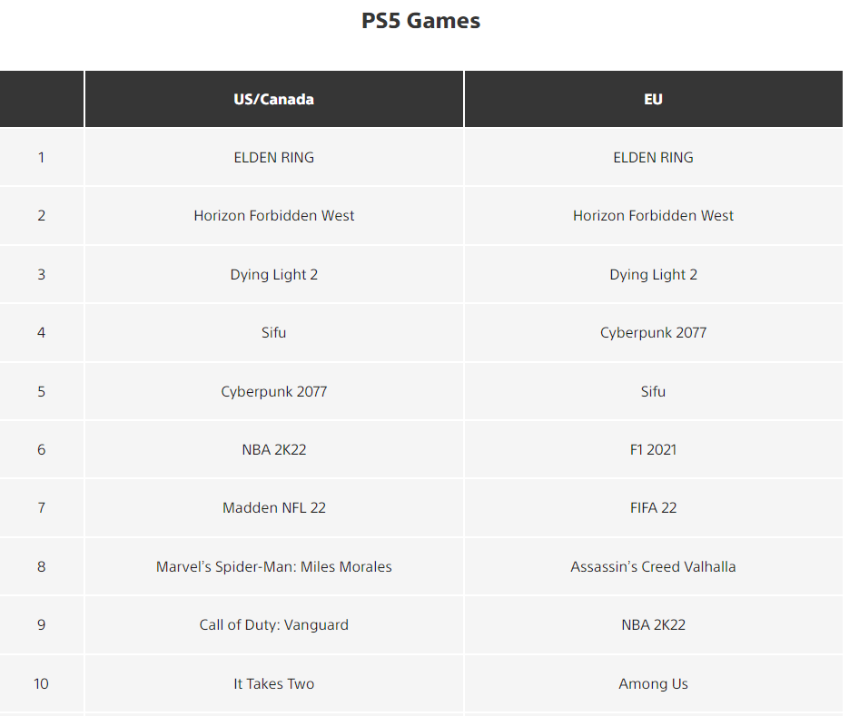 Elden Ring и Horizon Forbidden West возглавили февральский чарт продаж PS Store