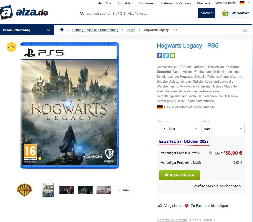 Hogwarts Legacy может выйти 27 октября. Дата релиза появилась на сайте европейского магазина