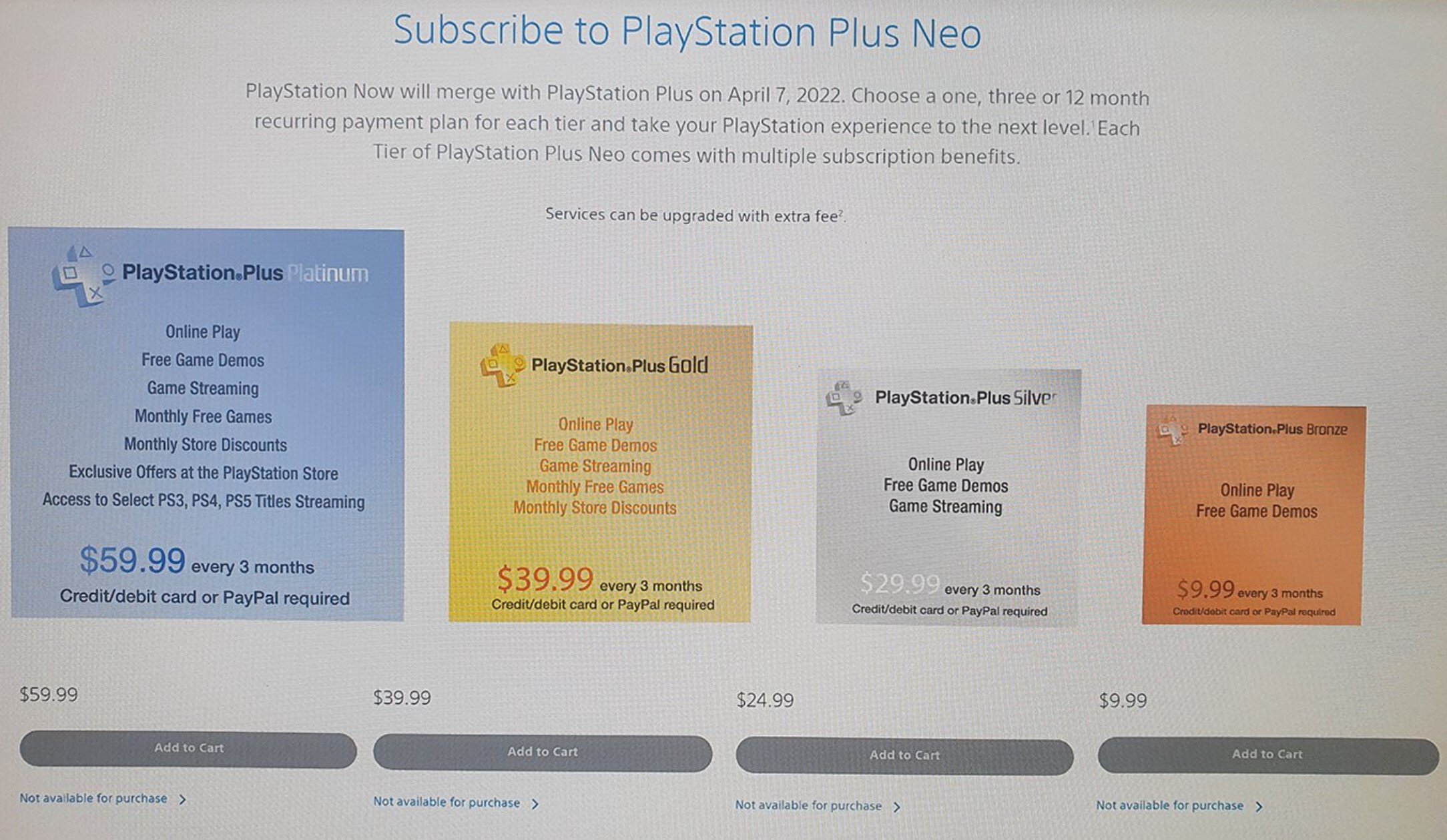 Сервис будет называться PlayStation Plus Neo. В нем будет четыре типа подписок:
