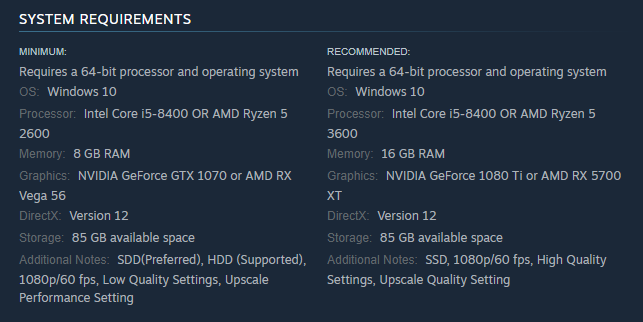 Системные требования игры опубликованы на странице магазина Steam, доступ к которой для пользователей из России закрыт.