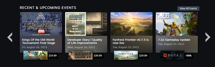 Также теперь в каждом разделе магазина выводятся подходящие ивенты и события игр: