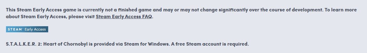 На странице Stalker 2 в Humble Store находится стандартная плашка для игр в Steam Early Access, которая предупреждает перед покупкой, что игра находится на этапе разработки и не является завершенным продуктом.