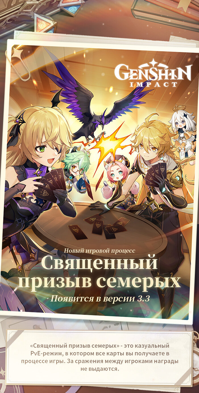В обновлении 3.3 в Genshin Impact добавят PvE-режим карточный игры под названием «Священный призыв семерых».