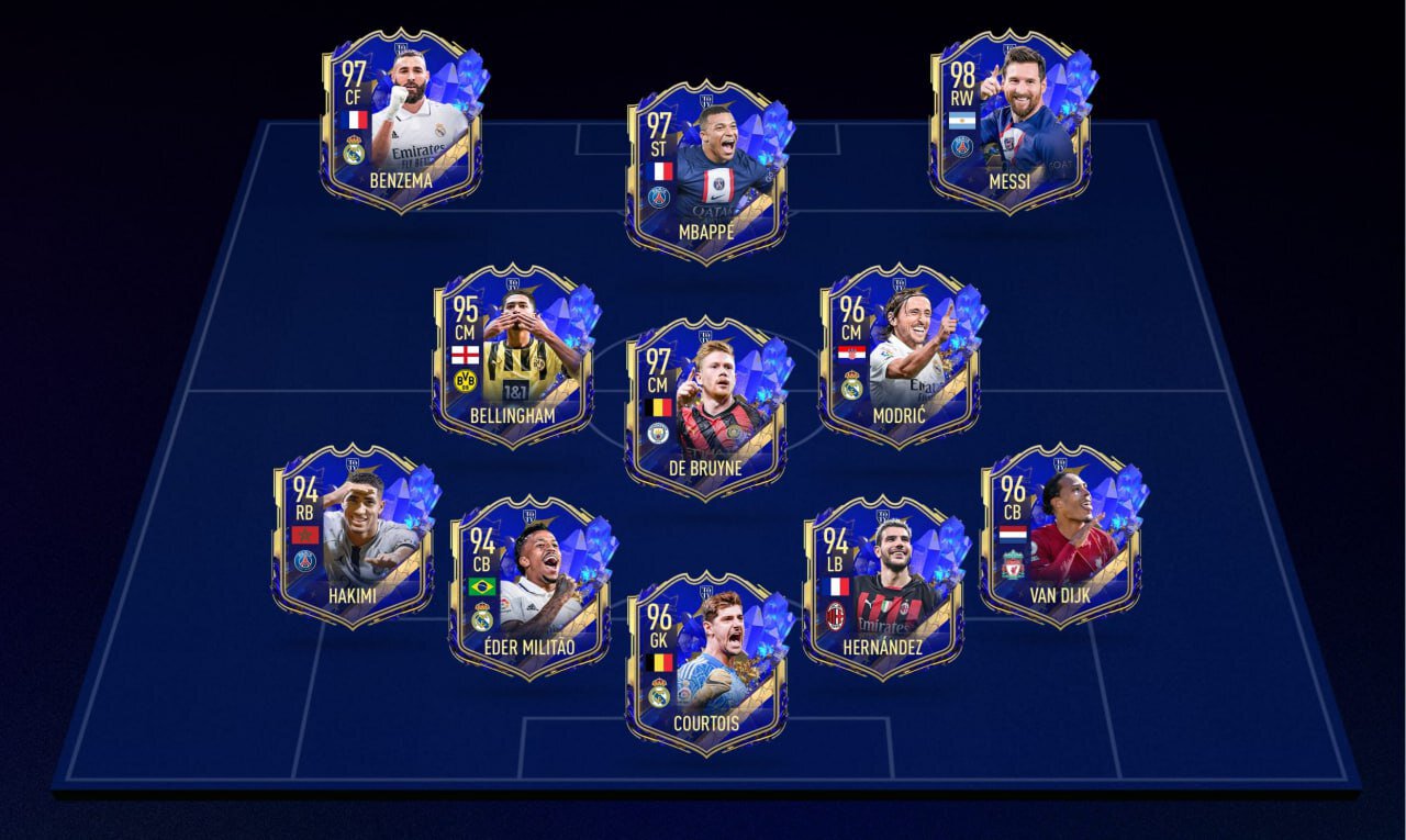 Месси с рейтингом 98 возглавил команду года в FIFA 23. Мбаппе, Бензема и де Брюйне оценили в 97 баллов