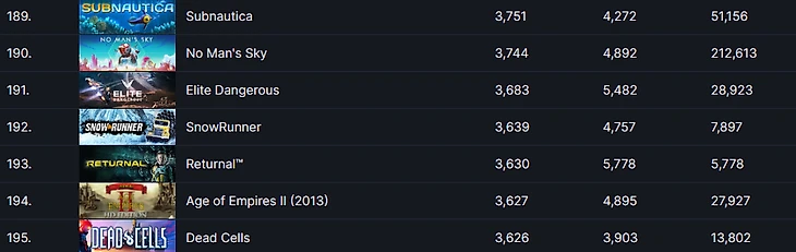 На момент публикации новости в Returnal находятся 3 630 игроков, проект занимает 193-е место в рейтинге по данному показателю.