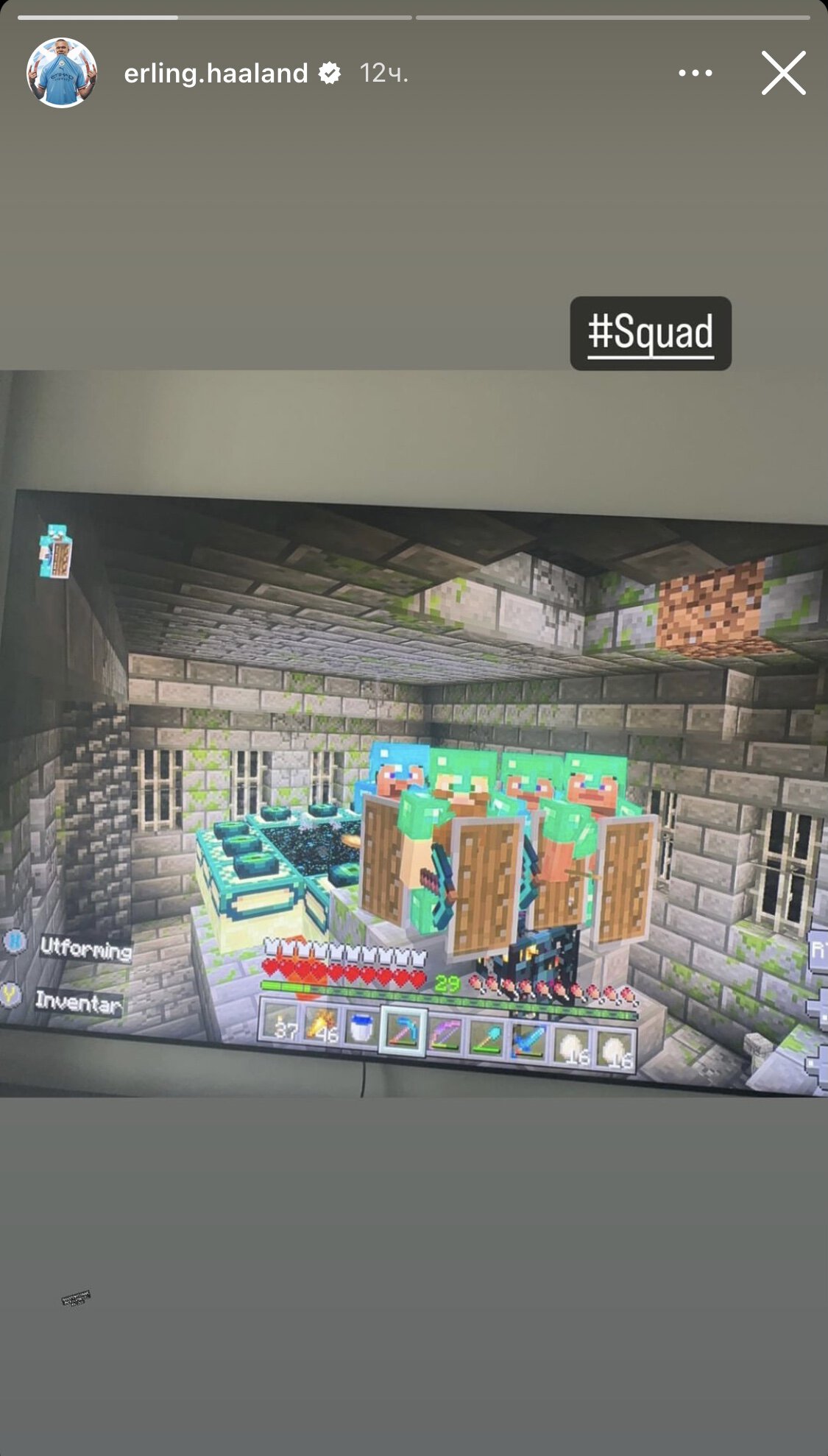 Эрлинг Холанд опубликовал в сторис момент игры в Minecraft, подписав кадр «Сквад».
