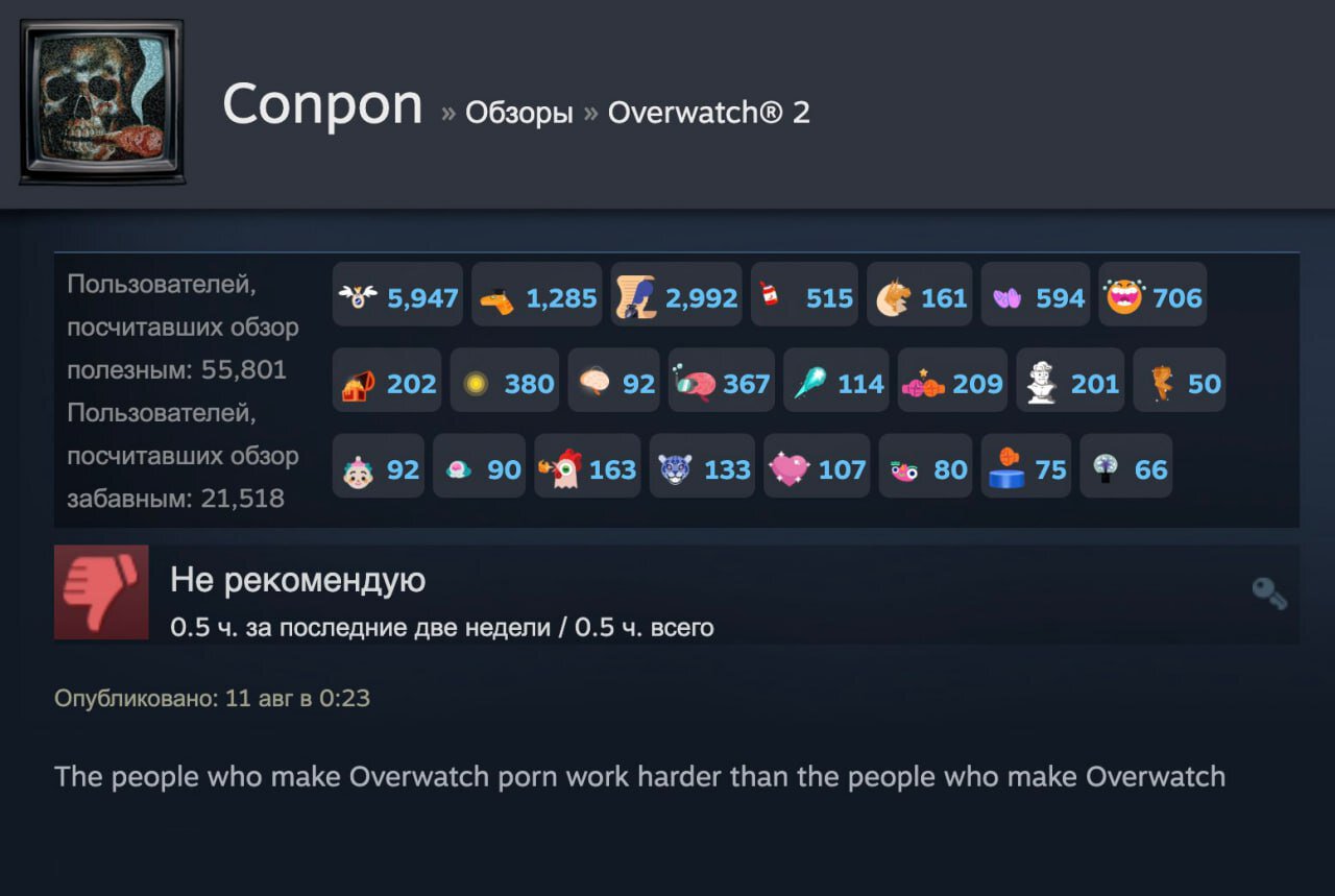 В комьюнити заметили, что автор сатирического обзора Overwatch 2 заработал 11,6 млн очков Steam.